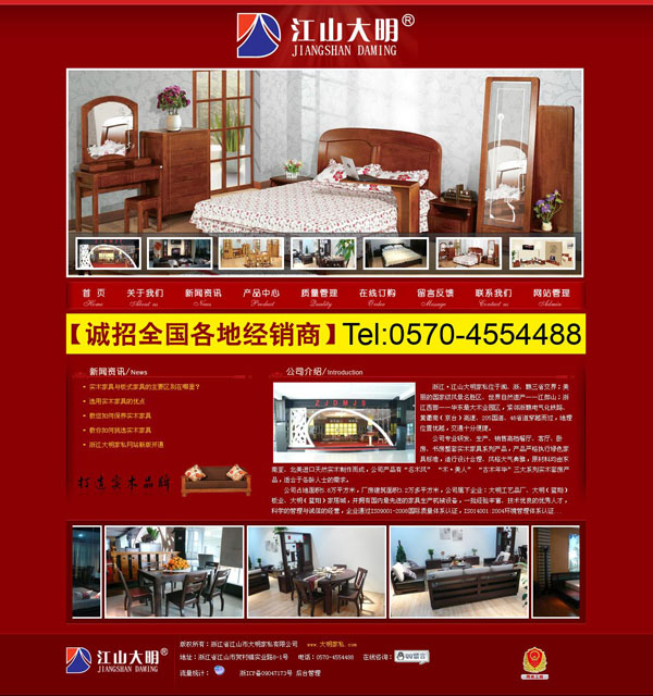 公司占地面积5.8万平方米,厂房建筑面积3.2万多平方米,公司属下企业:大明工艺品厂、大明(蓝翔)板业、大明(蓝翔)家居城,并拥有国内最先进的家具生产机械设备,一批经验丰富、技术优良的优秀人才,科学的管理与诚信的经营,企业通过ISO9001-2008国际质量体系认证,以“质量第一、服务优质”为原则,以“发展、合作、共赢”为宗旨。多年以来【江山大明】品牌在国内家具行业中已有稳定的市场,全国有300多个大中城市销售网络,同时运销俄罗斯、日本、韩国、东南亚等国家。